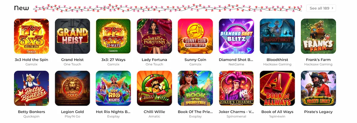 Verde is packed with the best titles the iGaming industry offers. This includes most of the games you could think of, such as classic slots, Megaways games, live casino tables, and even crypto-based minigames.